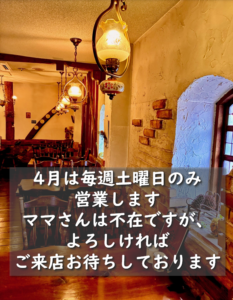 2026年4月は毎週土曜日だけ営業します